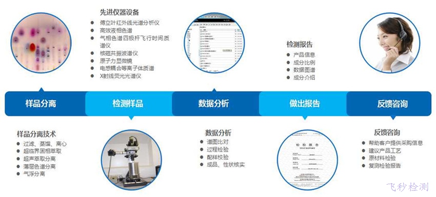 定義:給出某未知物質的化學組成(化學名稱和含量)的一項特殊分析服務稱為配方成分分析。配方成分分析是通過先進的分析測試手段,對某一個產品進行配方的成分分析與還原,從而獲得精確的原始配方。化學配方分析,需要最先進的分析儀器保證客觀準確性,還需要權威的全面的圖譜數據庫和分析案例。飛秒檢測擁有多年開發經驗的教授、博士、產線工程師,根據客觀數據進行分析和演算,最終還原出最精確的原始配方。